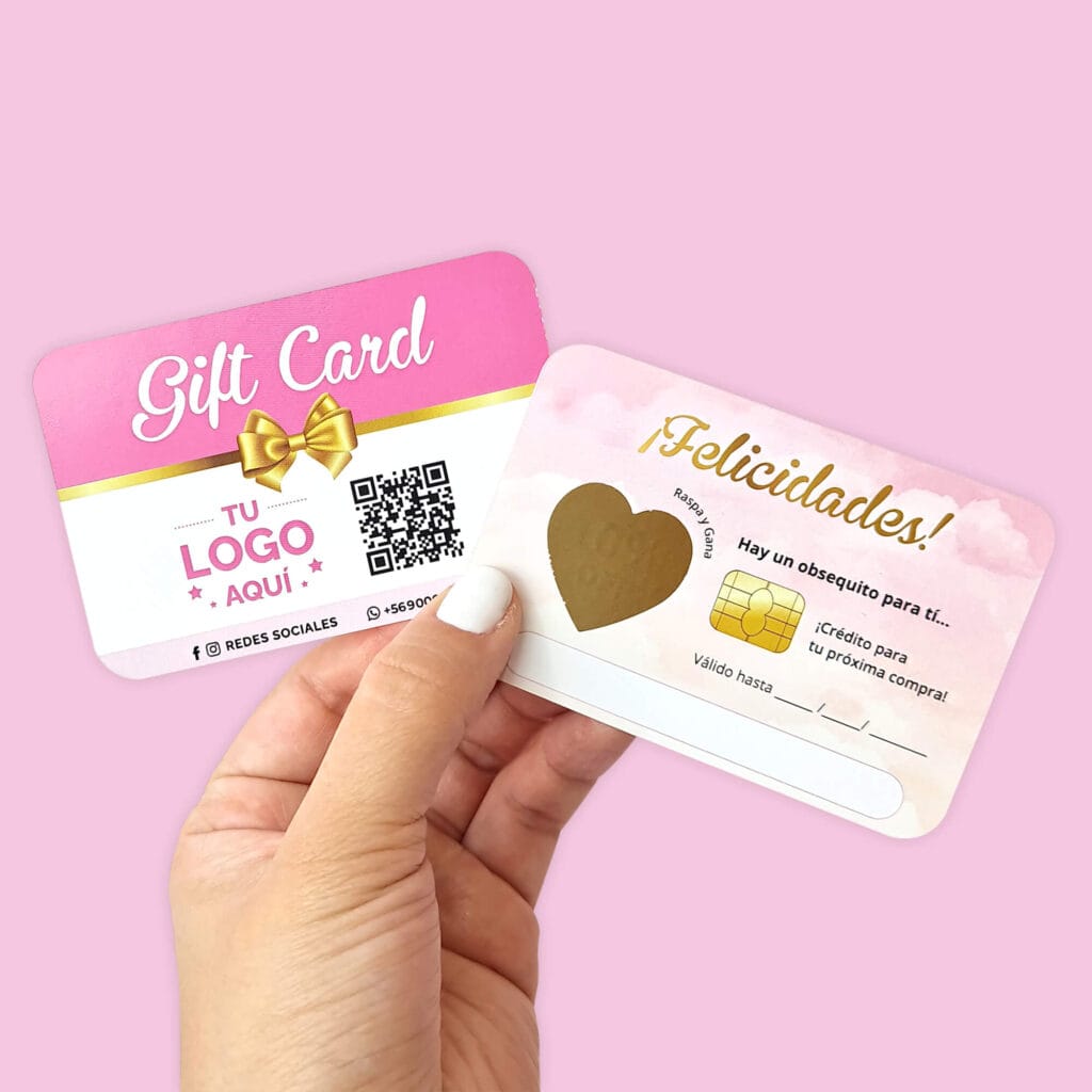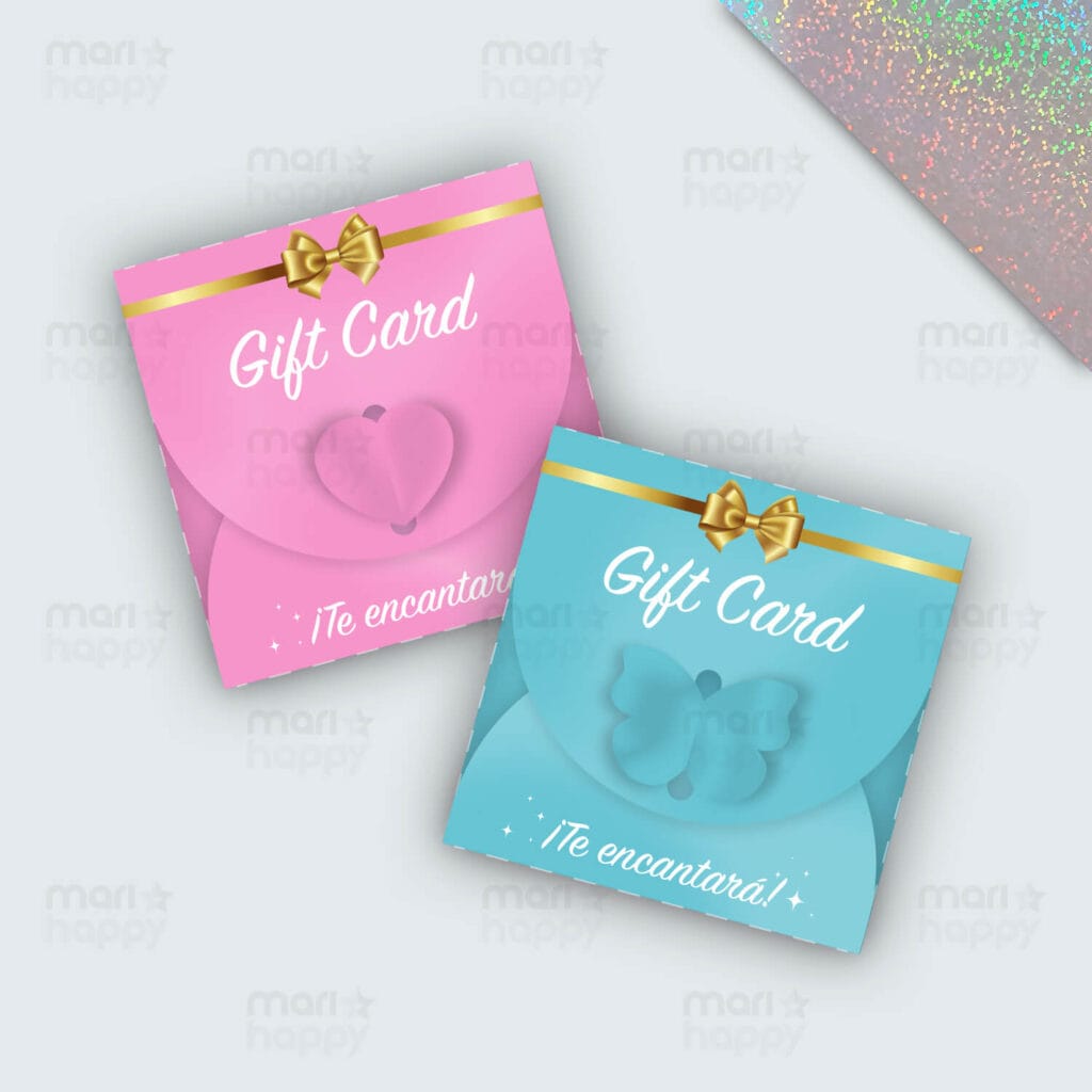 Tarjeta 5x5cm, ambas caras + Gomita de frutilla