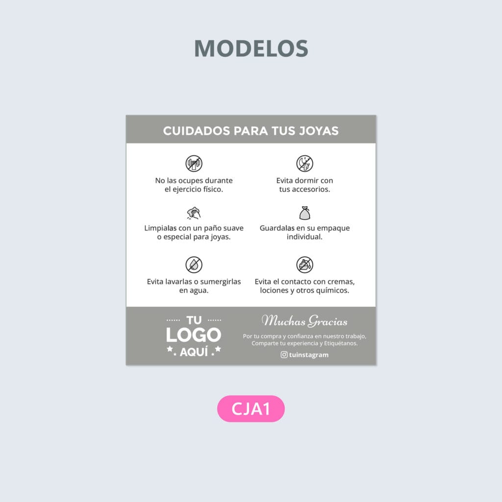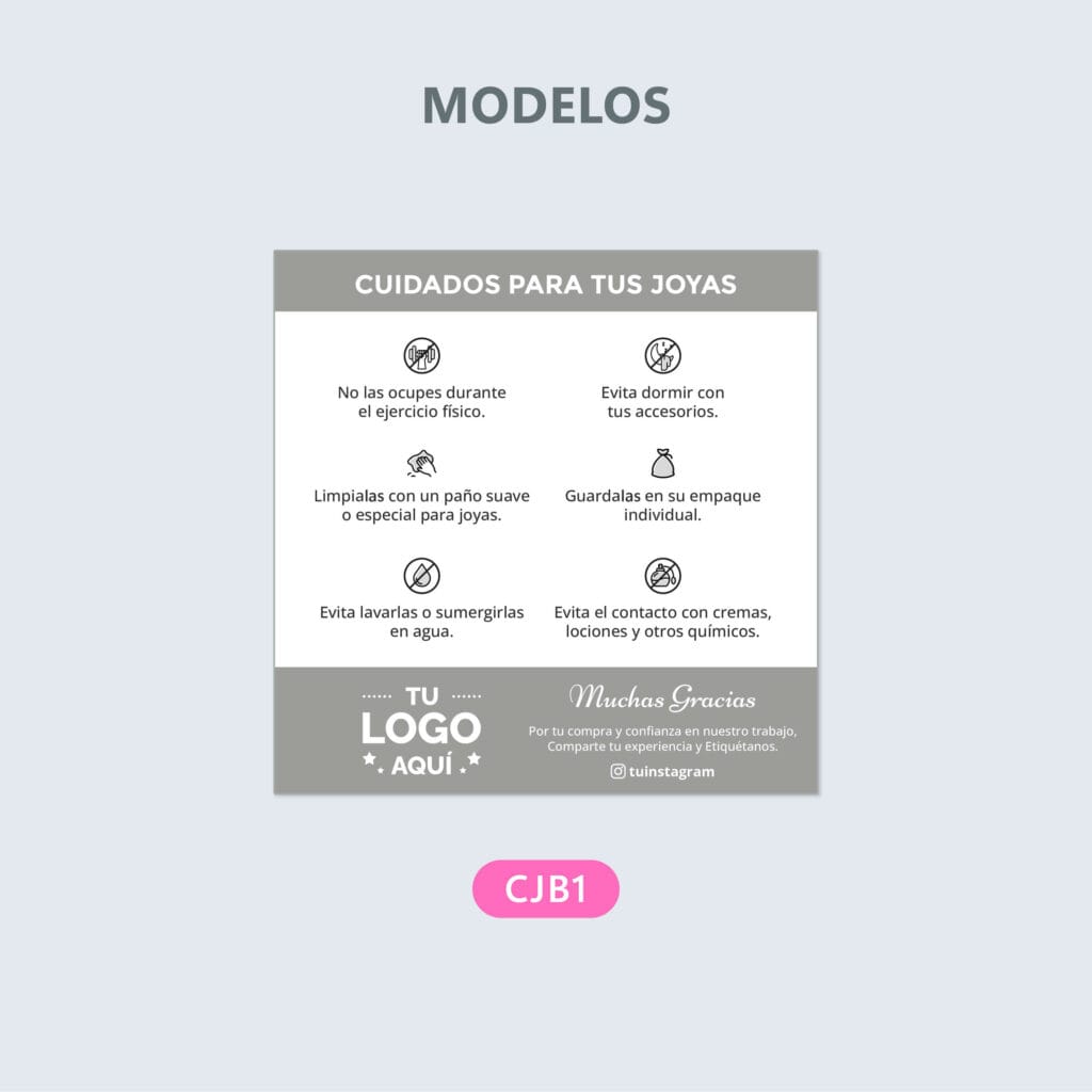 Tarjetas de Cuidados para Joyas