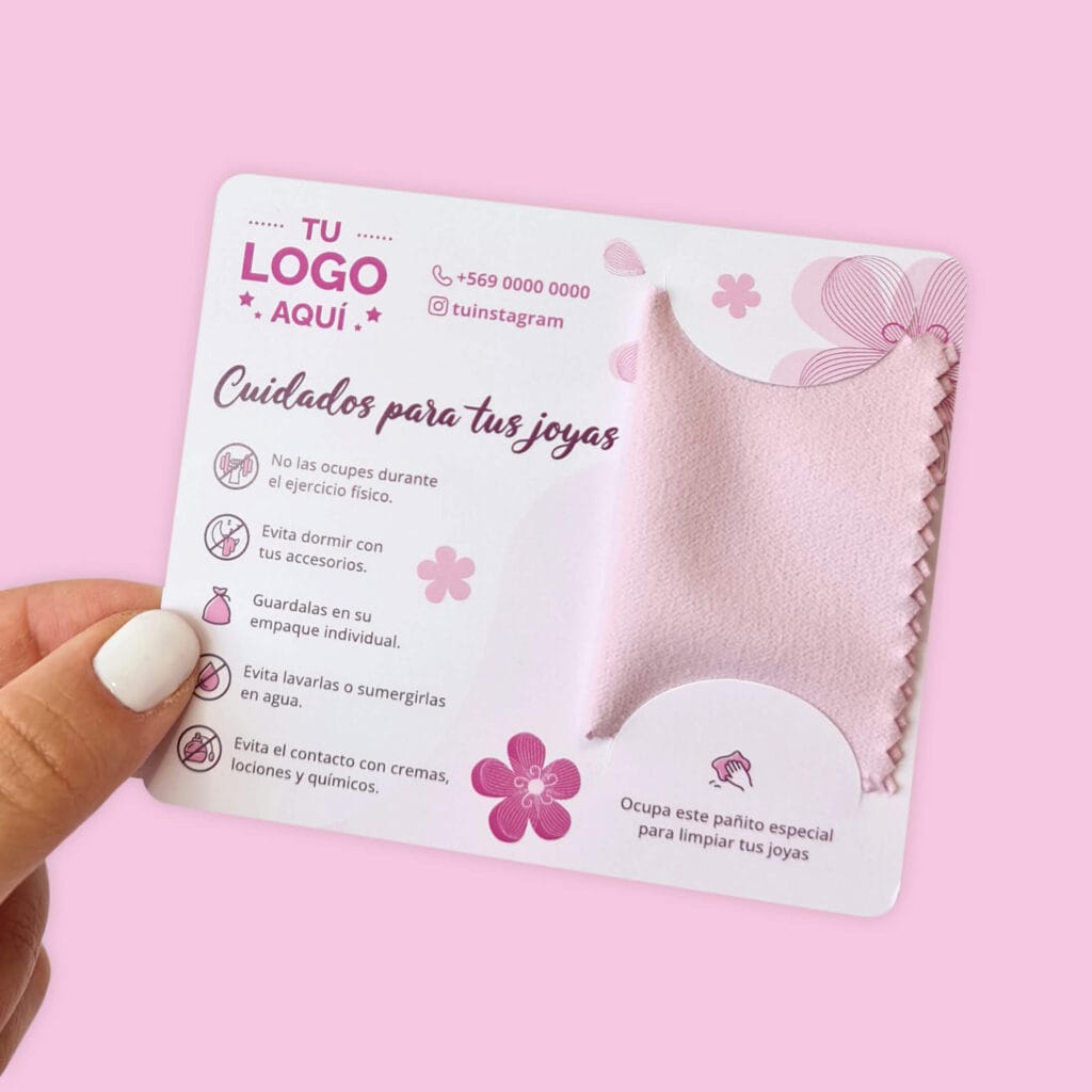 Tarjetas de cuidados para joyas 10×8,5cm, con pañito