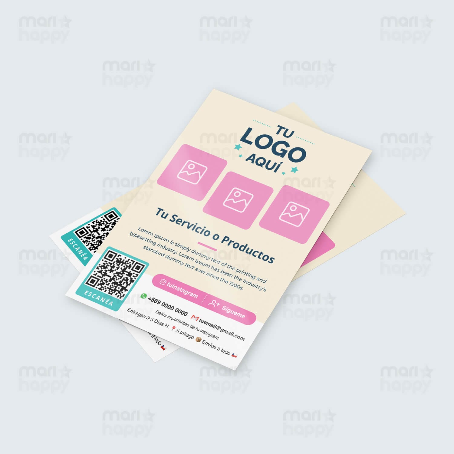 Si tu producto requiere un Logo/Diseño y Redes sociales, envíalo al correo ventas@marihappy.cl