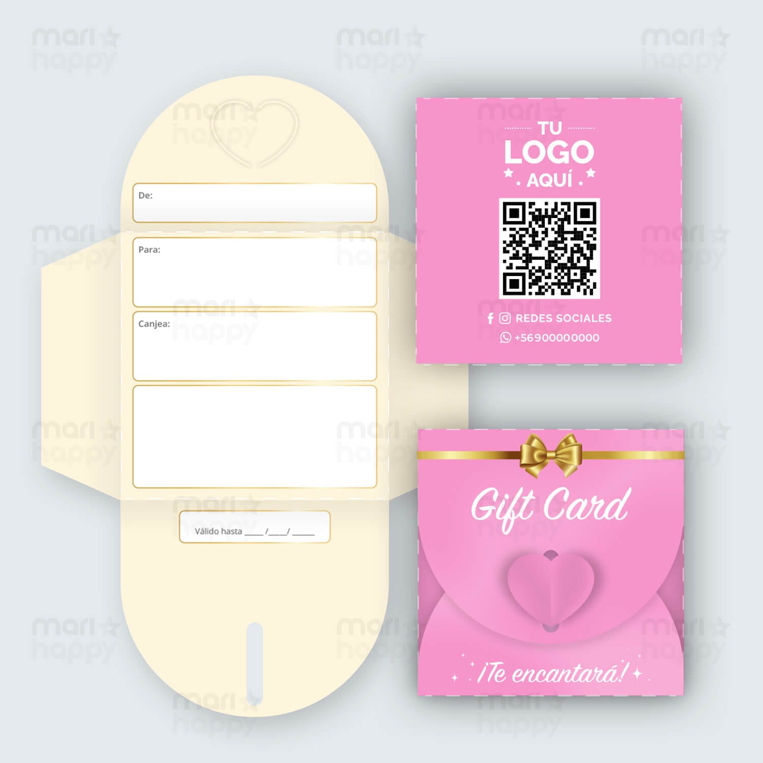 Si tu producto requiere un Logo/Diseño y Redes sociales, envíalo al correo ventas@marihappy.cl