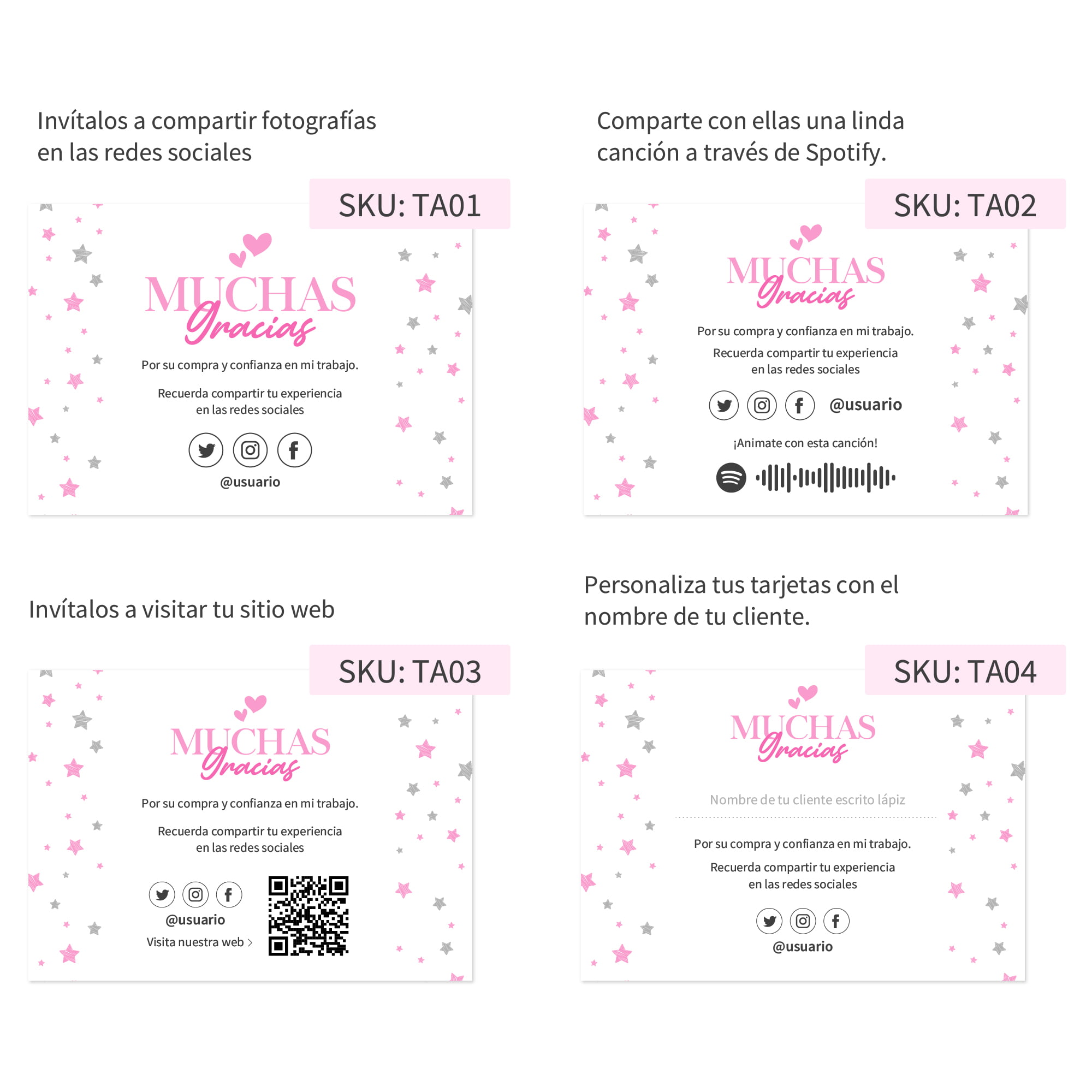 • 1 Diseño por pack, Impresión en Couché 300g, impresión laser semi brillante.